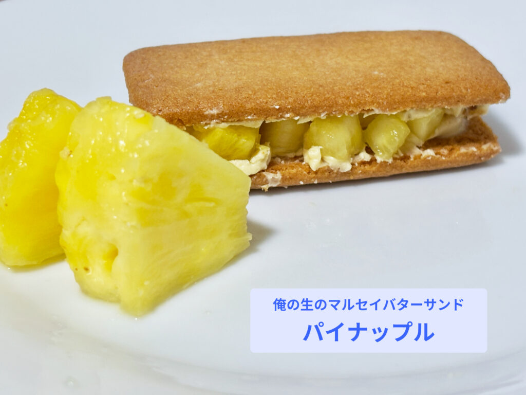 酸味が特徴のパイナップルをマルセイバターサンドにサンドしてみた。北海道のイメージとは相当かけ離れた、トロピカルな見た目である。